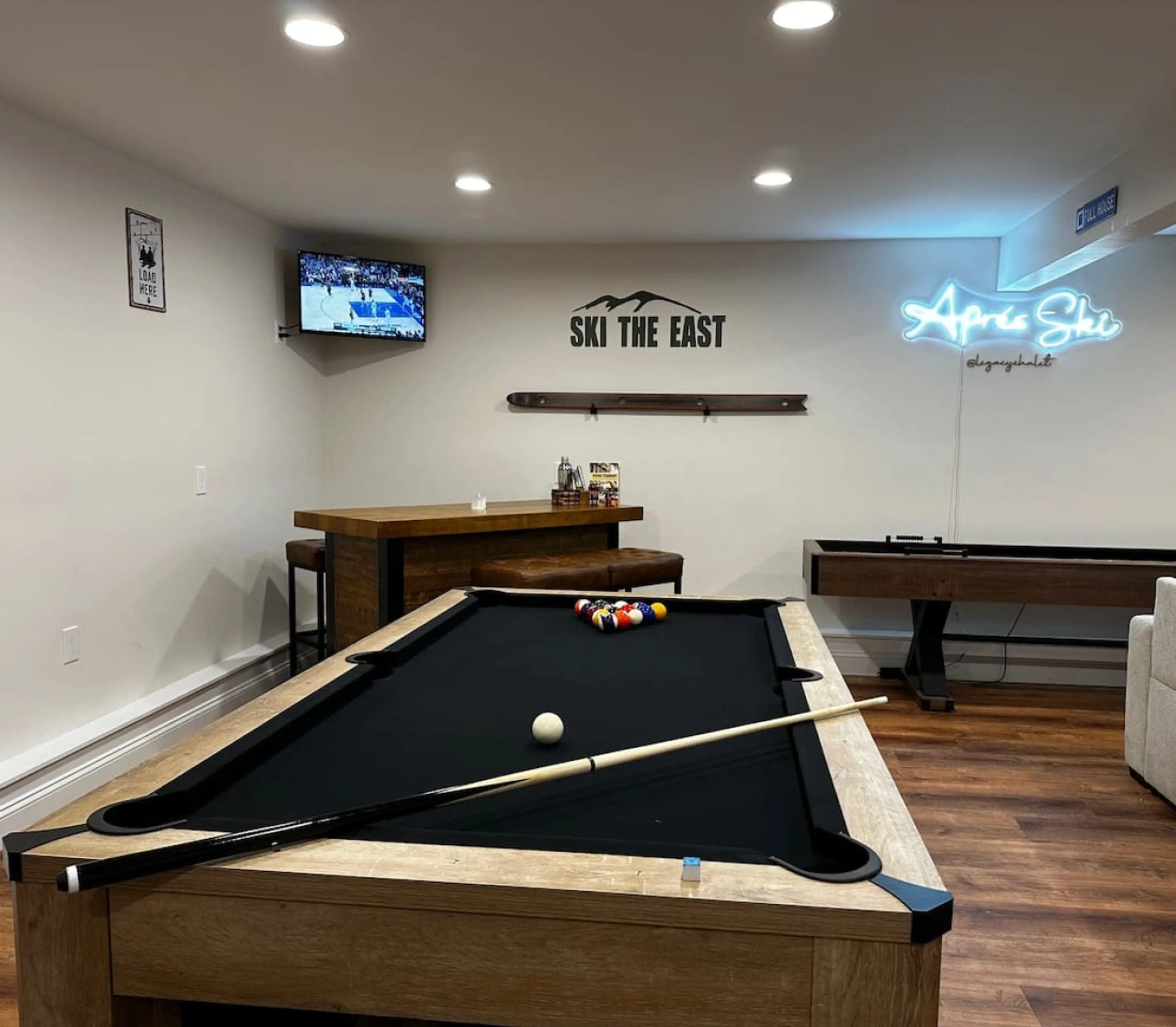 Luxury Ski Chalet in a GREAT location 🏂 5 MINUTES to PICO ⛷️ 15 MINUTES to KILLINGTON base 🛀🏼 HOT TUB and SOAK SHACK 🥃 SECRET BOOKCASE DOOR Hiding a large, well-equipped SPEAKEASY 🌲 Massive themed KIDS ROOM 🌱 2 MASTER BEDROOMS 🎱 THOUGHTFUL AMENITIES for large families seeking luxury an...